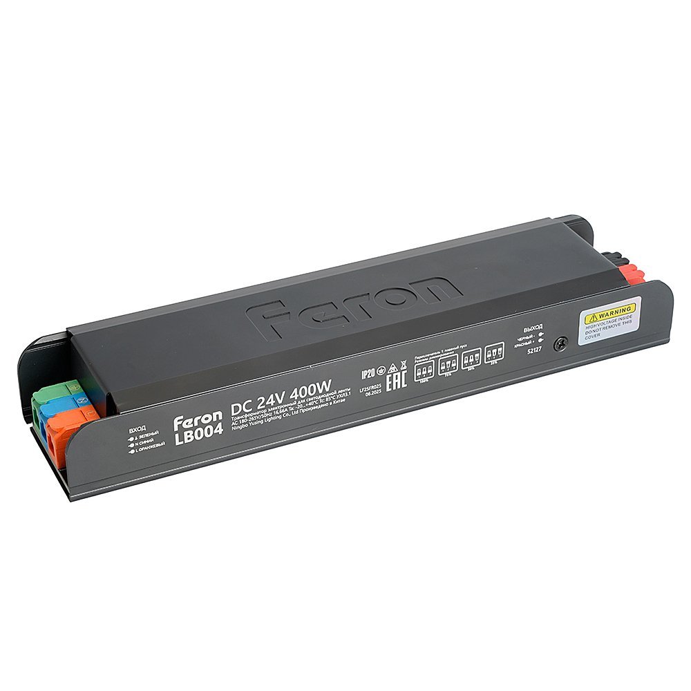 Трансформатор для светодиодной ленты с плавным пуском и диммированием 400W 24V IP20 Feron LB004 52127