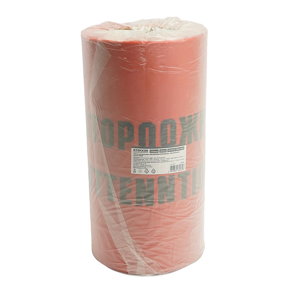Сигнальная лента ОСТОРОЖНО КАБЕЛЬ, 100 п.м.*250 мм*100 мкм Stekker INTP10-250-100 50299
