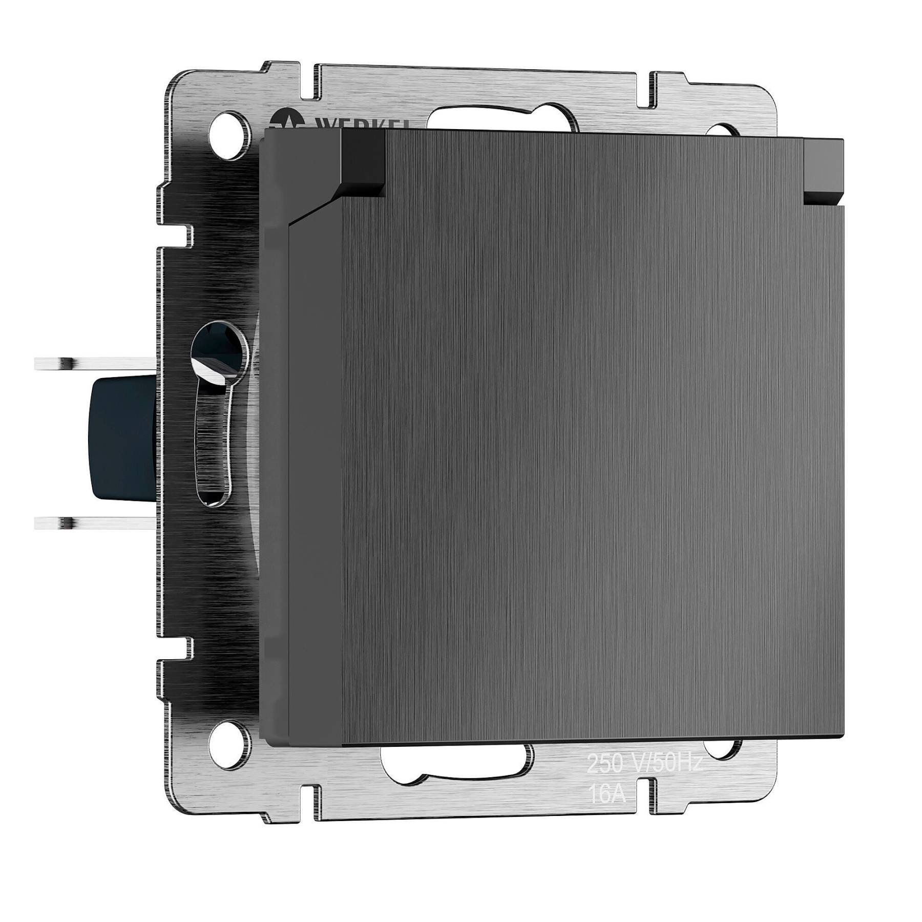 Розетка Werkel Встраиваемые механизмы графит рифленый W1171204/ Розетка влагозащ. с зазем. с защит. крышкой и шторками N (графит рифленый)