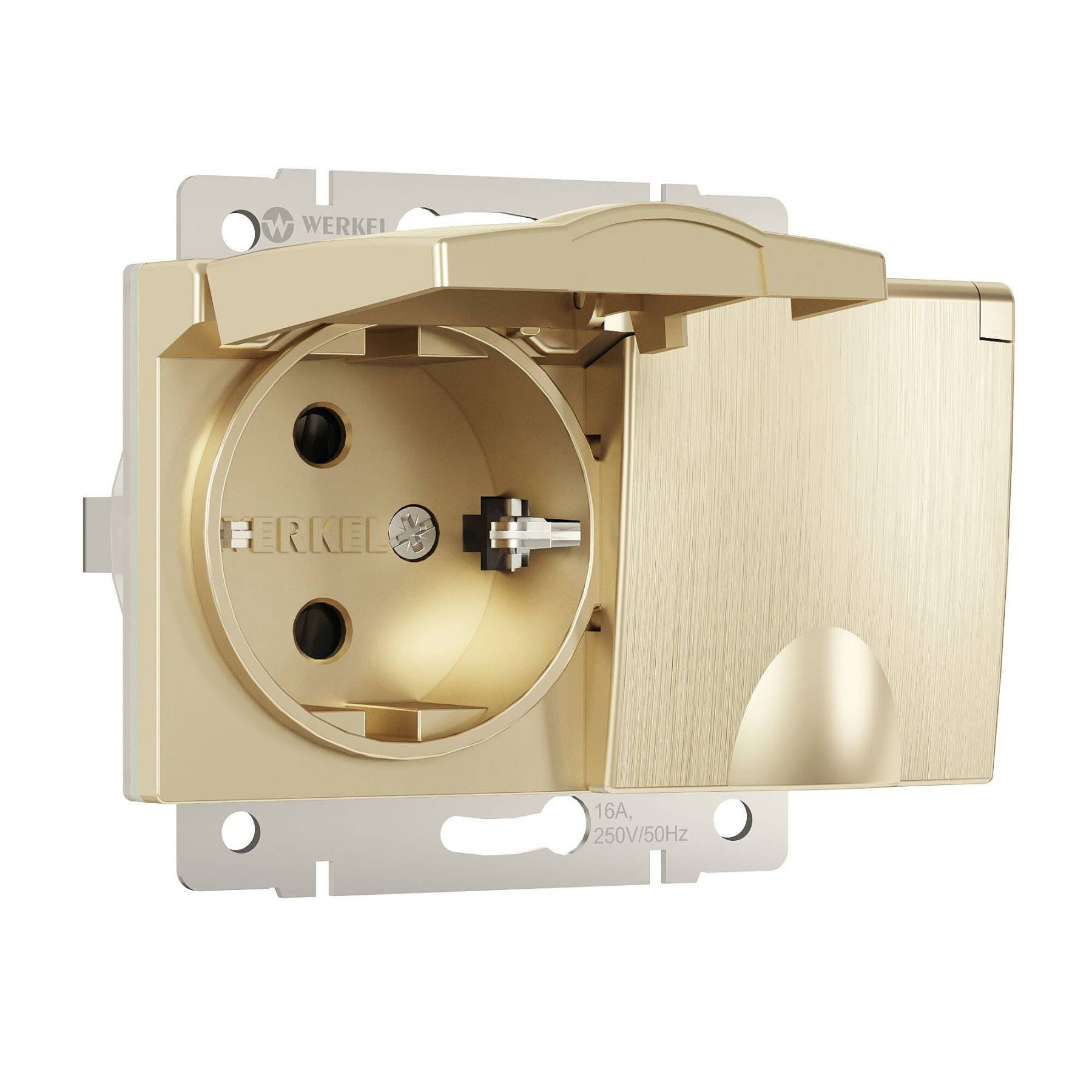 Розетка Werkel W1172210/ Розетка двойная влагозащ. с зазем. с защит. крышками и шторками (шампань рифленый)