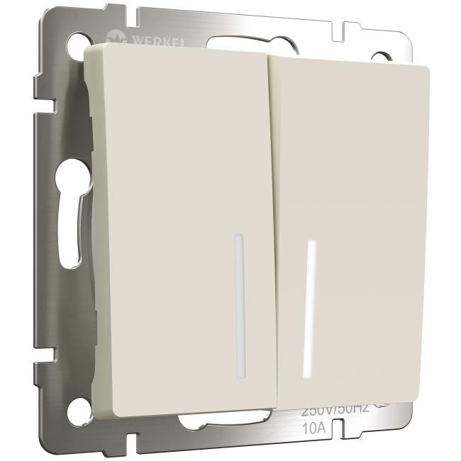Выключатель Werkel W1122162/ Выключатель двухклавишный проходной с подсветкой (айвори матовый)