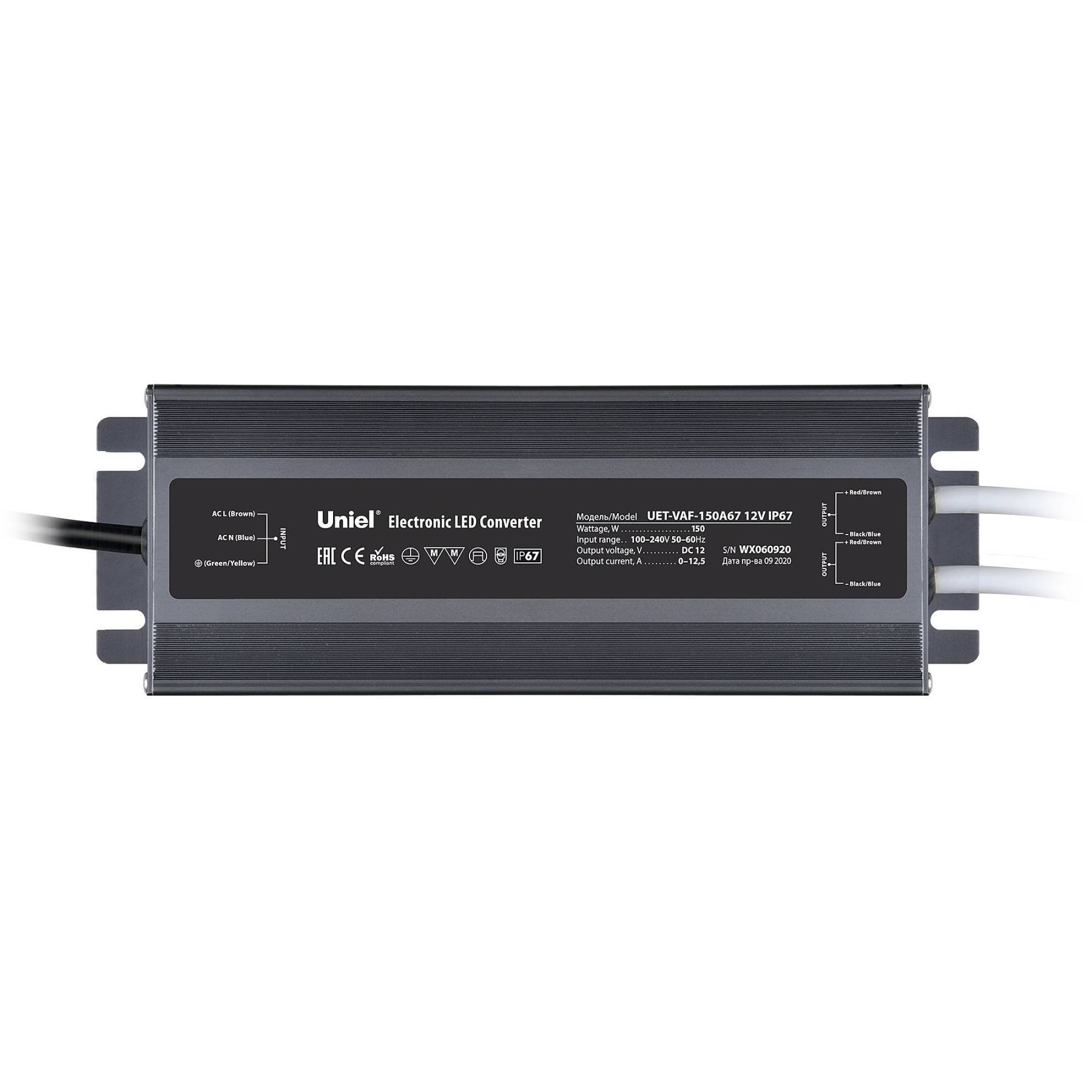 Блок питания ультратонкий, 150Вт Uniel UET-VAF-150A67 12V IP67 2 выхода