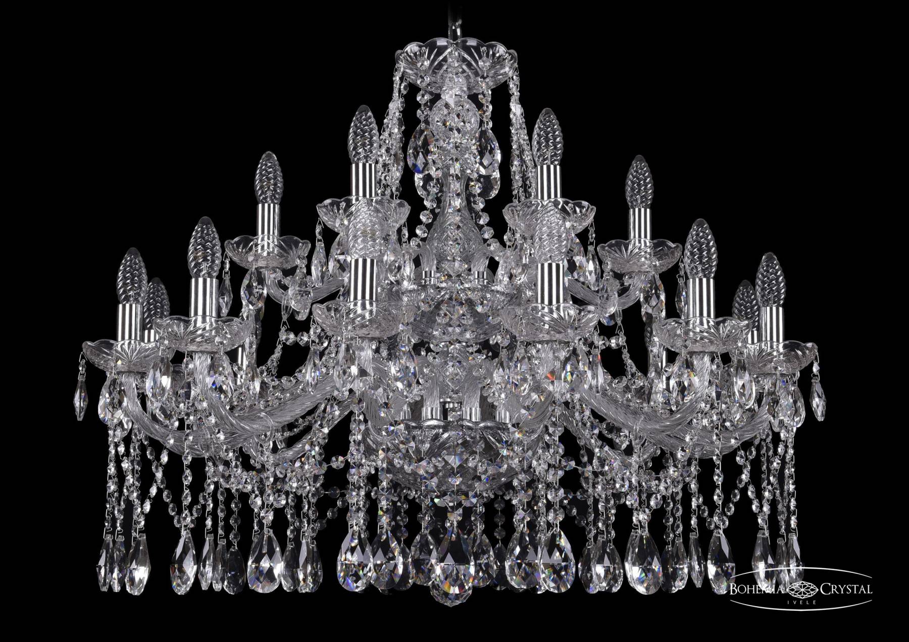 Подвесная хрустальная люстра 1413 Bohemia 1413/12+6/300/2d Ni