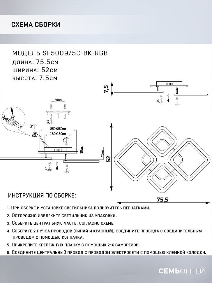 Потолочная люстра Seven Fires Makena SF5009/5C-BK-RGB