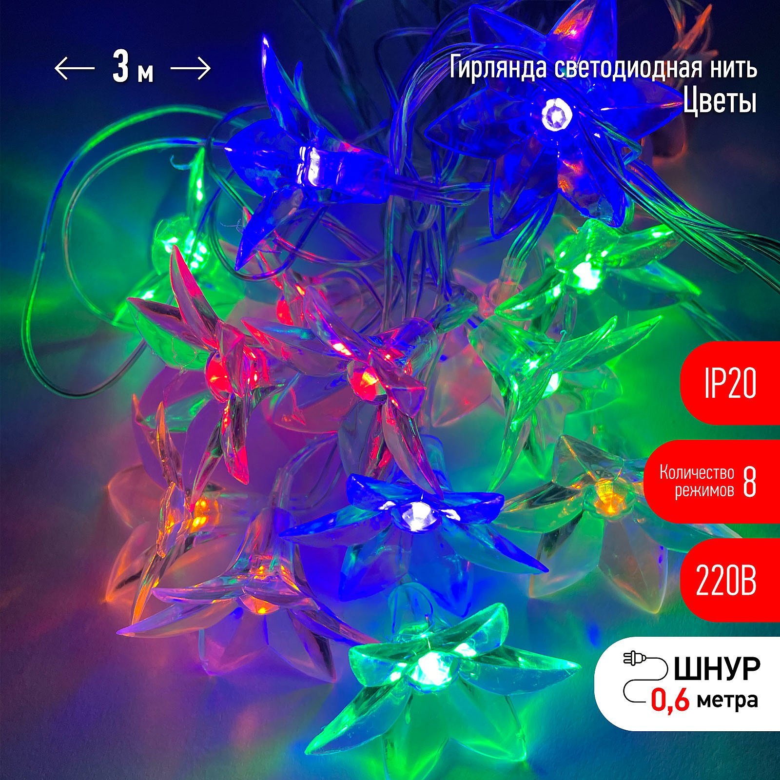 Гирлянда ЭРА Нить Цветы ENIN-3Z